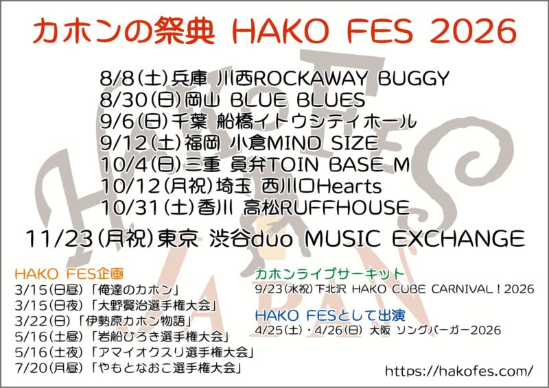 2025/11/23 HAKO FES 2025 JAPAN のページを更新しました(配信情報更新)
